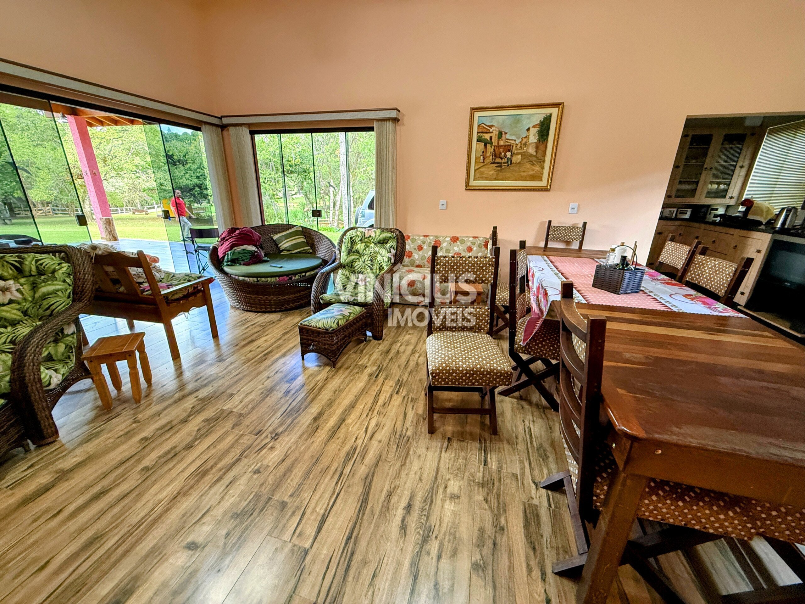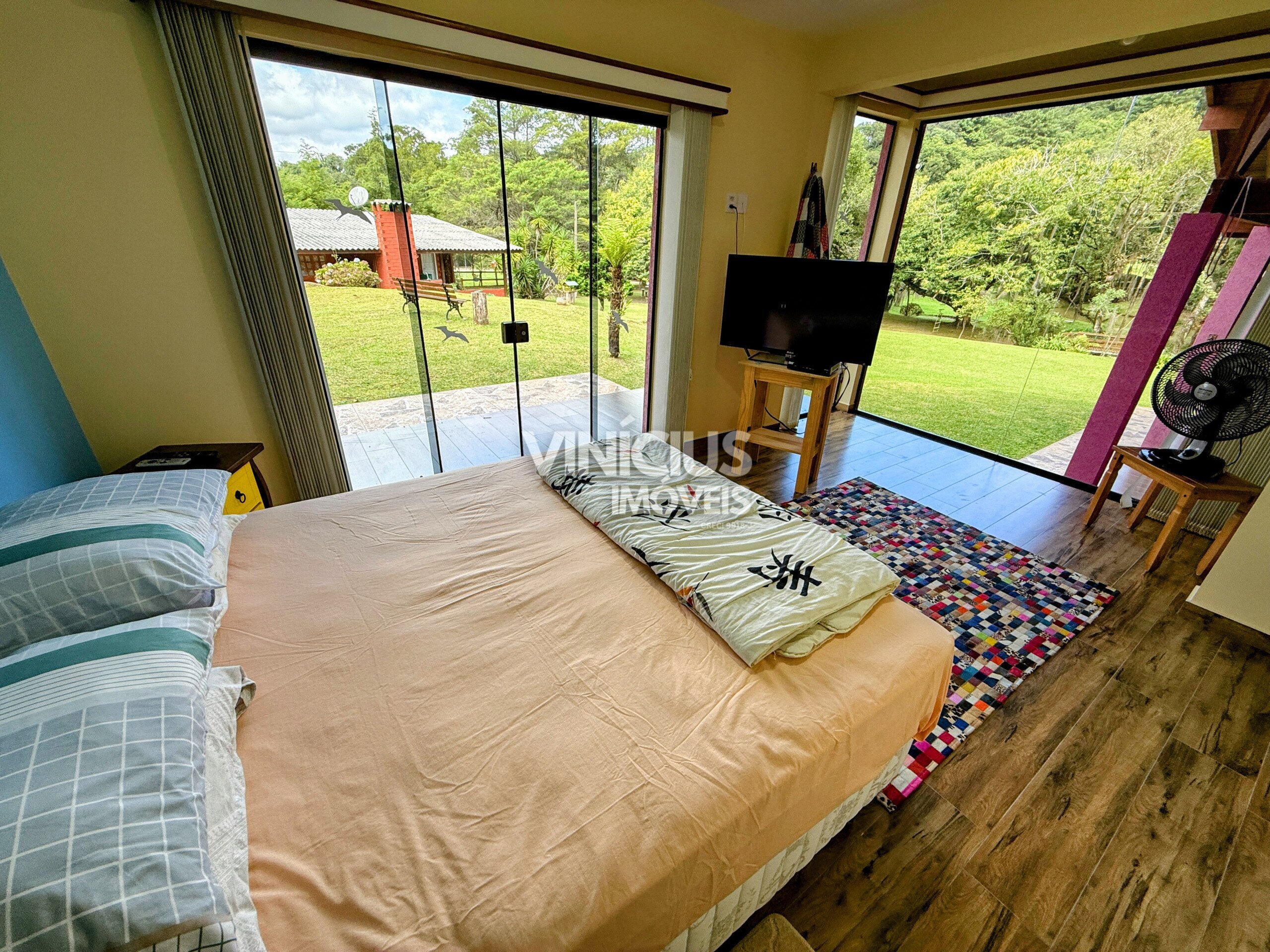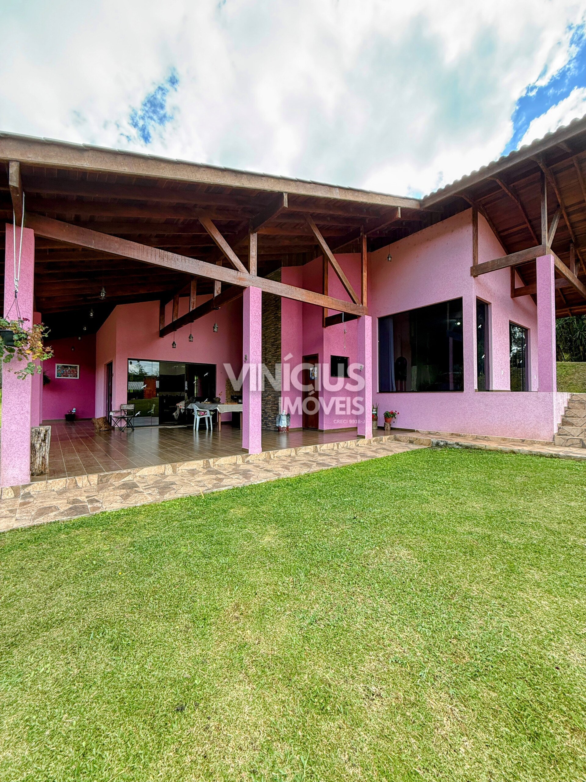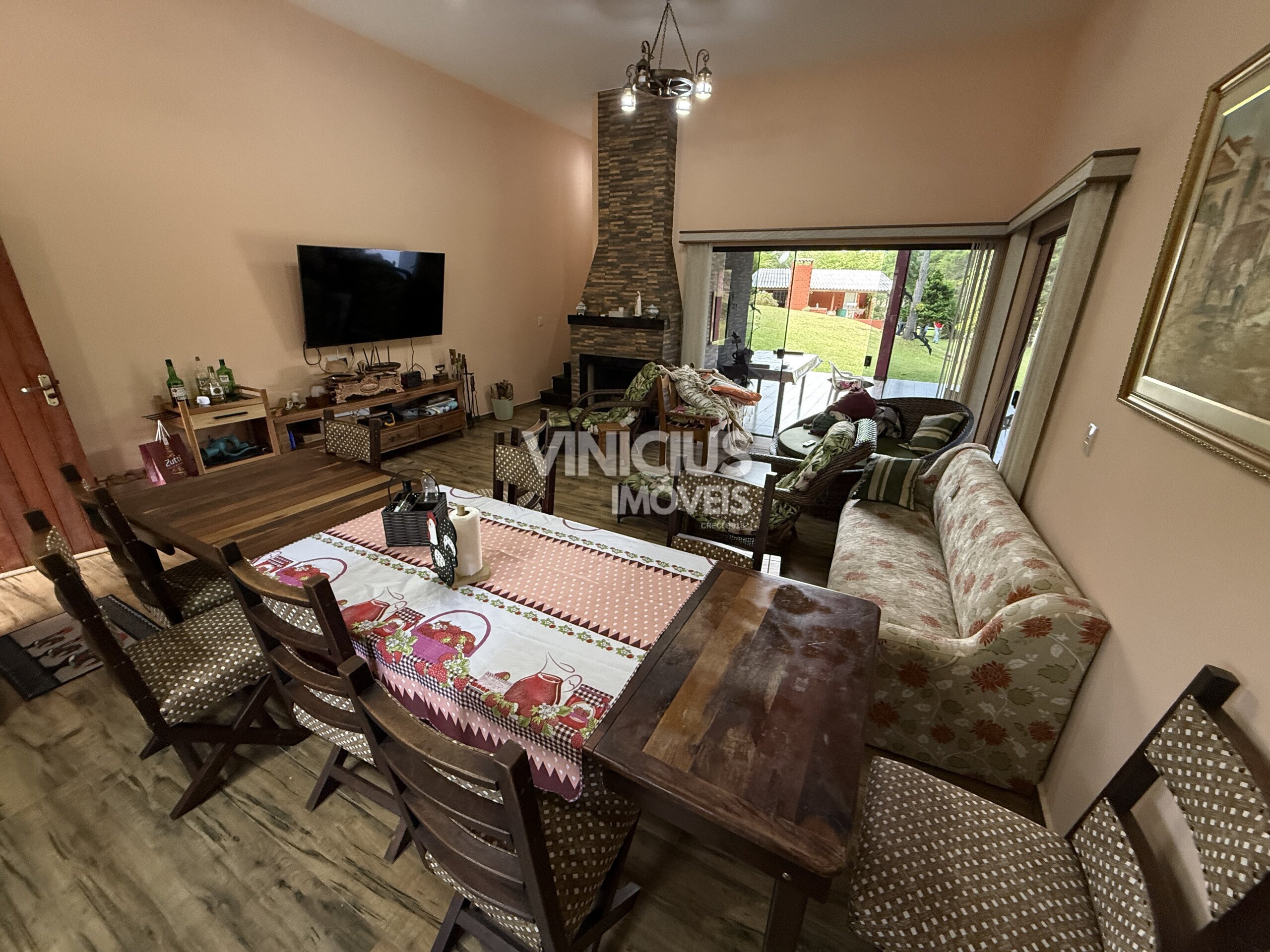 A propriedade conta com duas casas bem estruturadas. A casa principal é nova, com aproximadamente 200 m², oferecendo 3 quartos (sendo 1 suíte), sala e cozinha integradas, três banheiros, acabamento em porcelanato, vidros temperados, laje, sistema de gás, além de churrasqueira, lareira e fogão a lenha, proporcionando conforto em todas as estações.