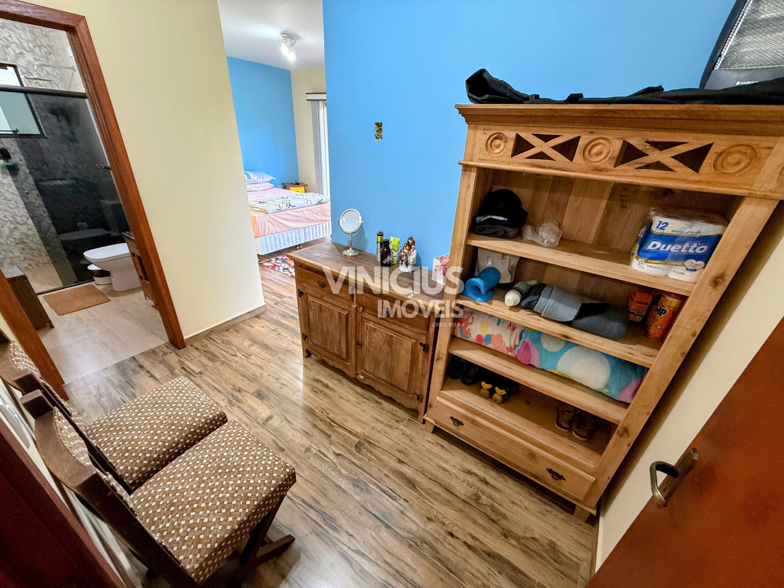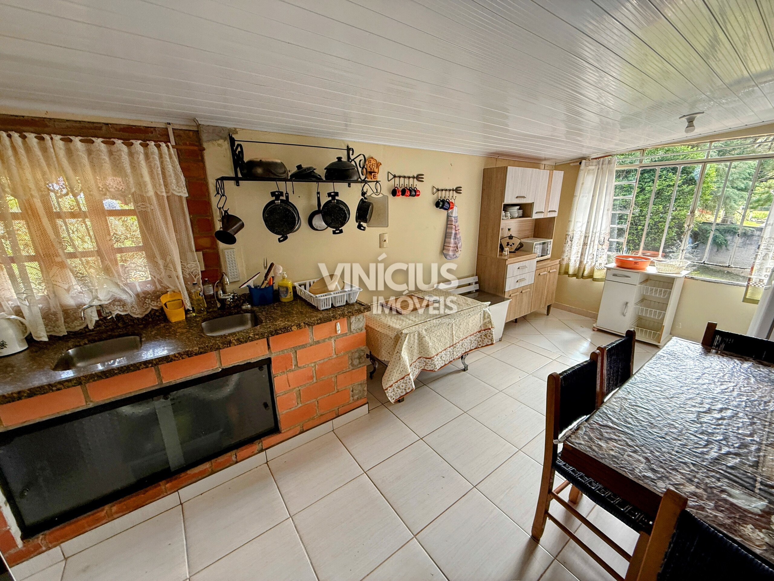 A segunda casa, reformada e em ótimas condições, possui cerca de 120 m², também com 3 quartos (1 suíte), sala e cozinha integradas, além de fogão a lenha e churrasqueira, ideal para receber familiares ou até gerar renda.