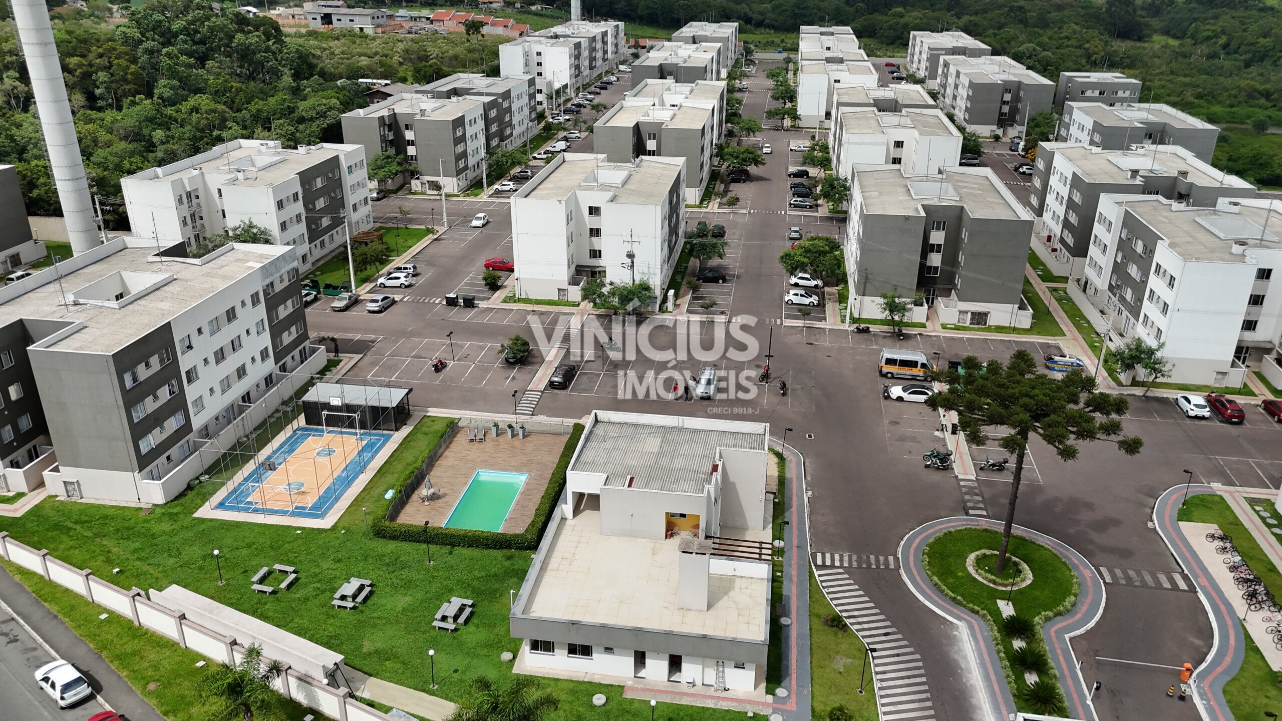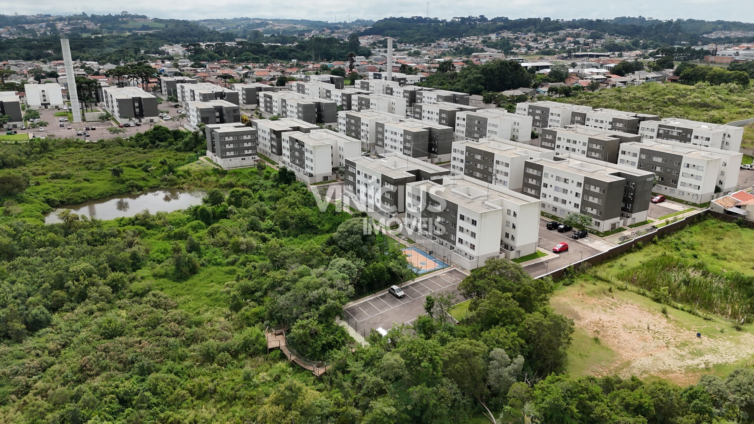 Condomínio clube com piscina, academia, cinema, salão de festas, lago, áreas verdes e portaria 24h.