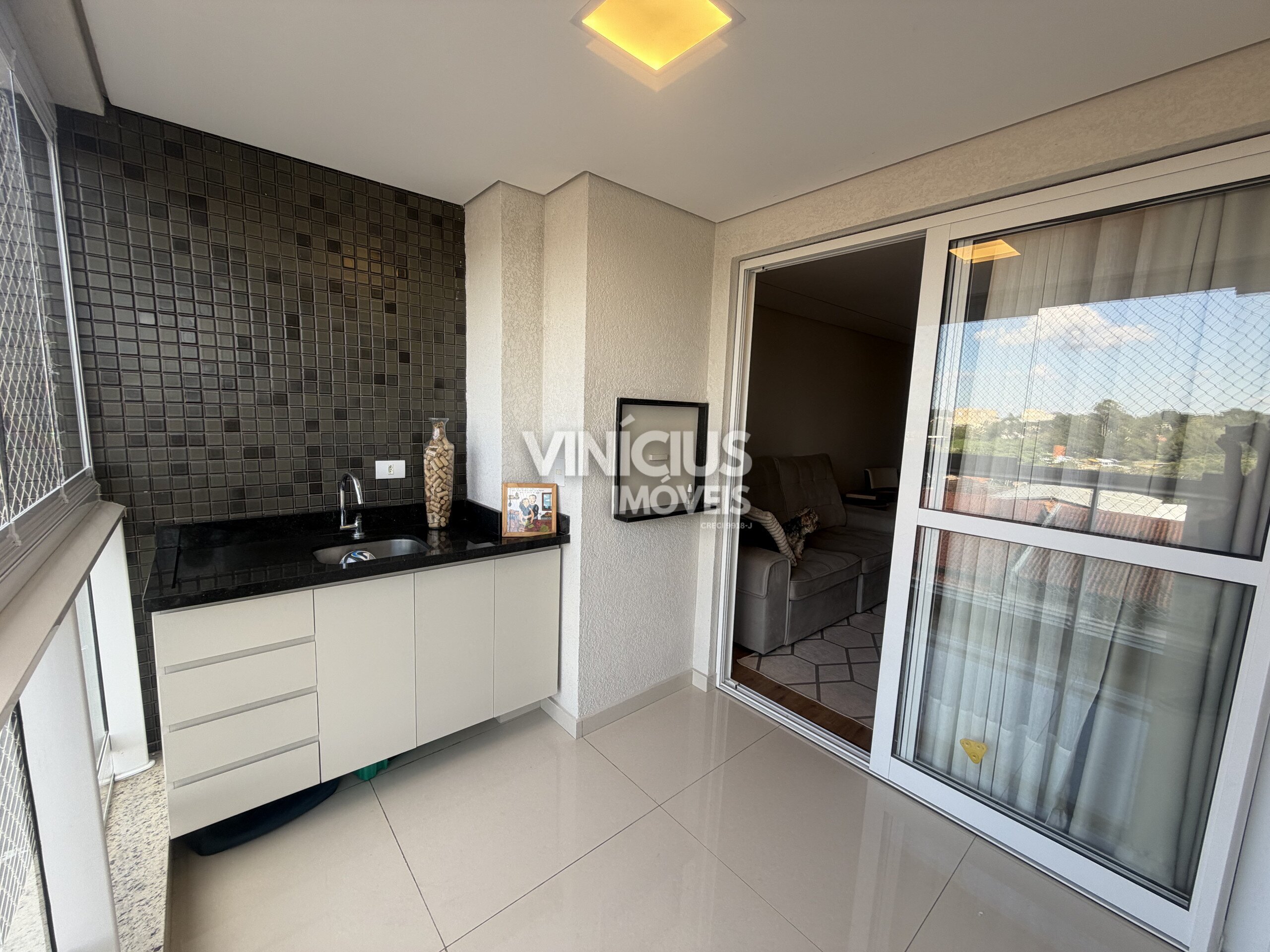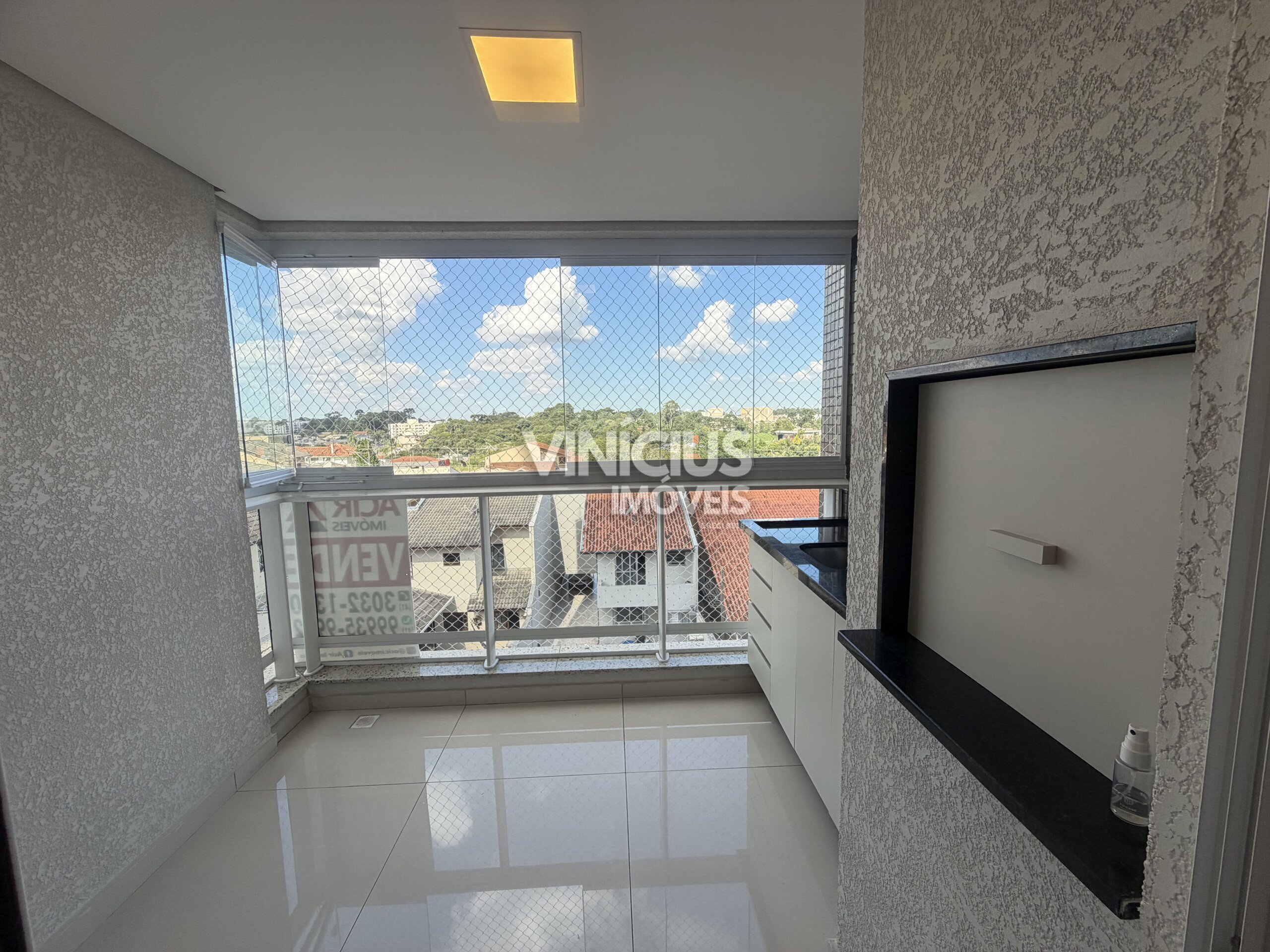 Um dos grandes destaques do imóvel é a ampla sacada com churrasqueira: