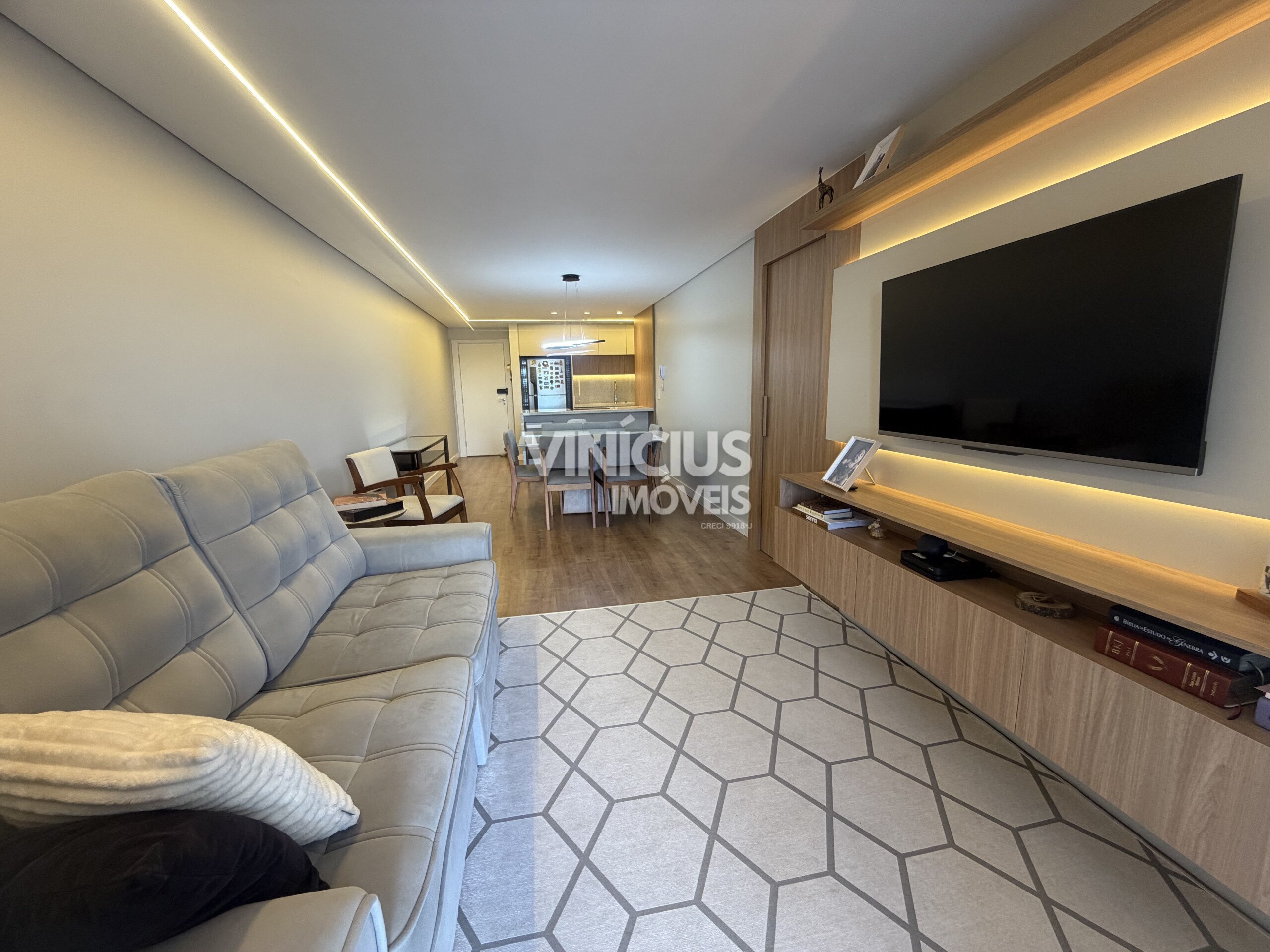 Com 102 m² de área privativa, o imóvel surpreende logo ao entrar: