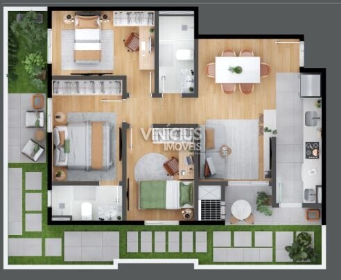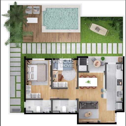 Apartamentos de 2 e 3 quartos, além de opções garden com áreas externas privativas, projetados com cozinha integrada à sala, churrasqueira a carvão na sacada e acabamentos modernos. Banheiros com tampo em granito, infraestrutura para ar-condicionado, aquecimento a gás e medição individual de água e gás garantem mais conforto e praticidade no dia a dia.