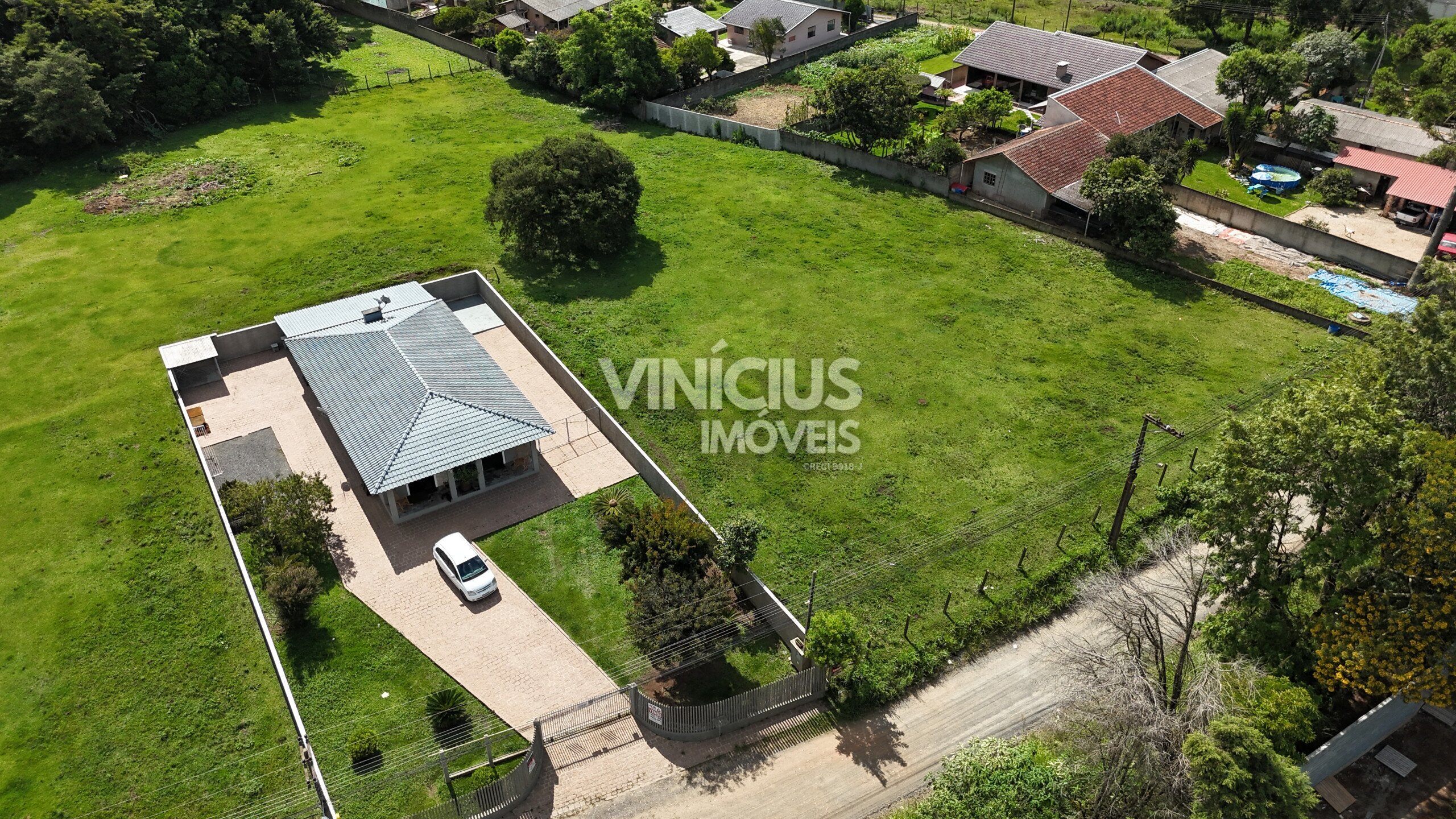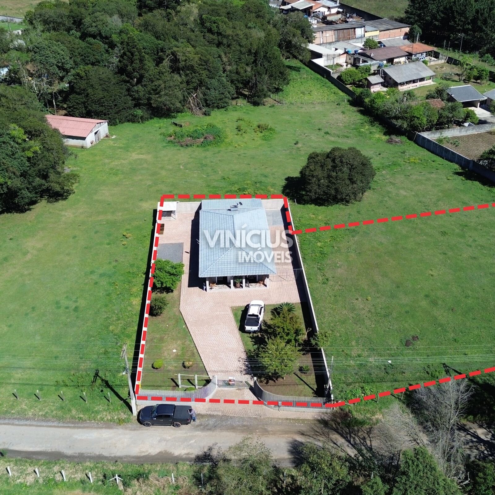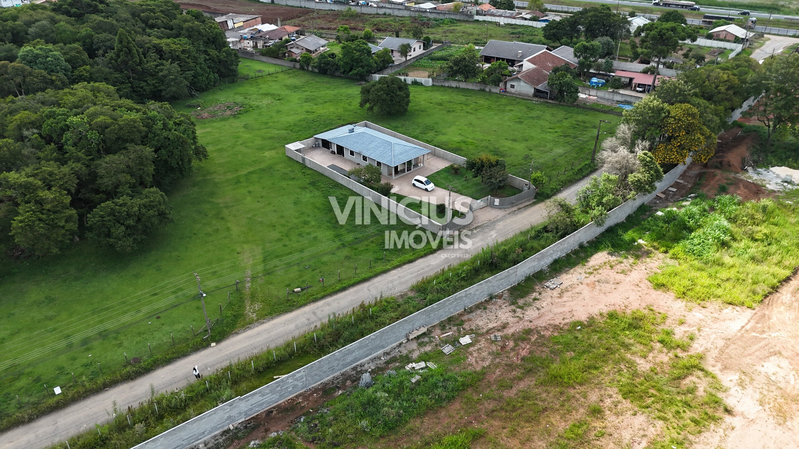 O terreno possui 2.000 m² e a casa está semi mobiliada, incluindo cozinha e um quarto com móveis planejados.