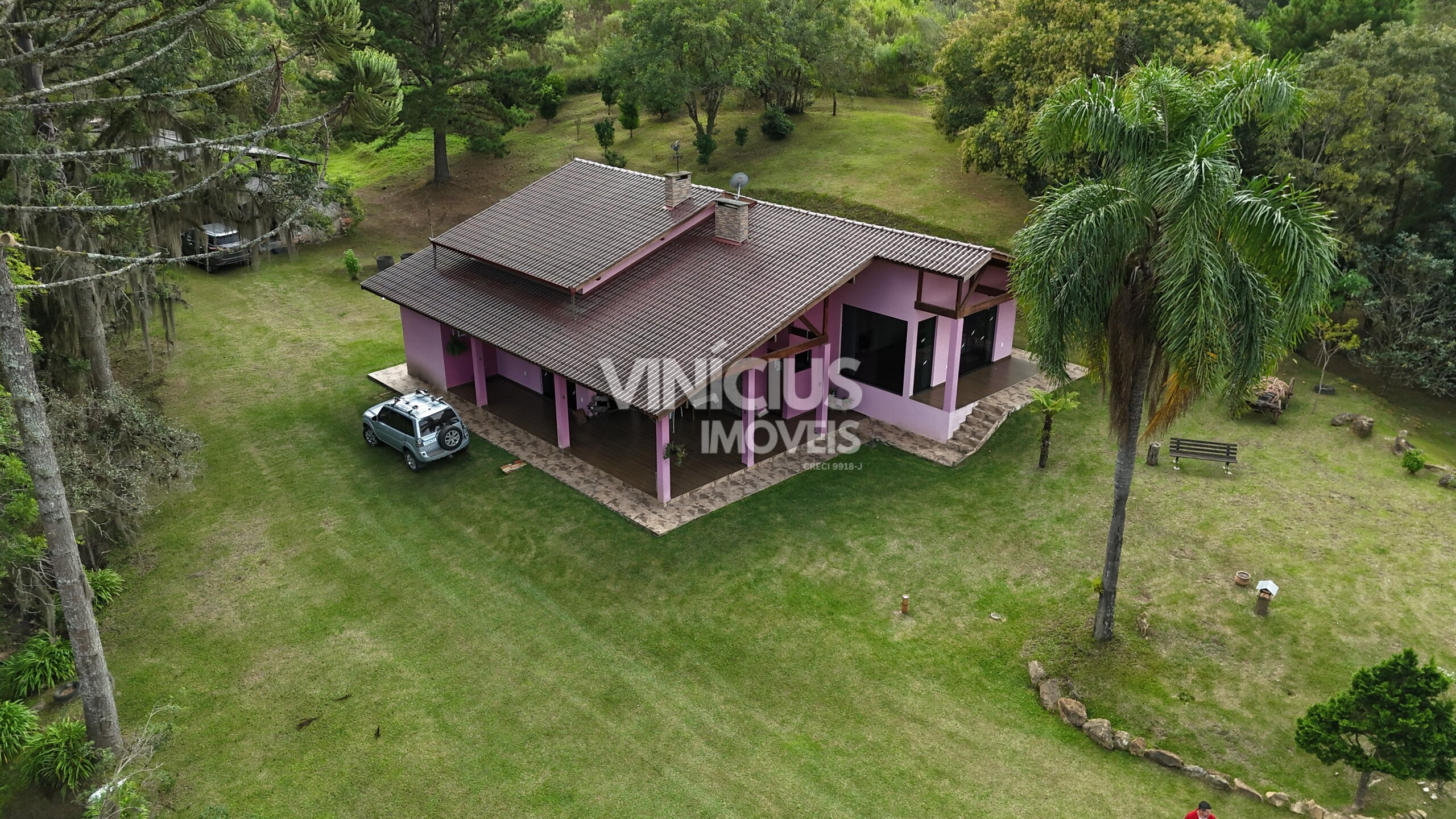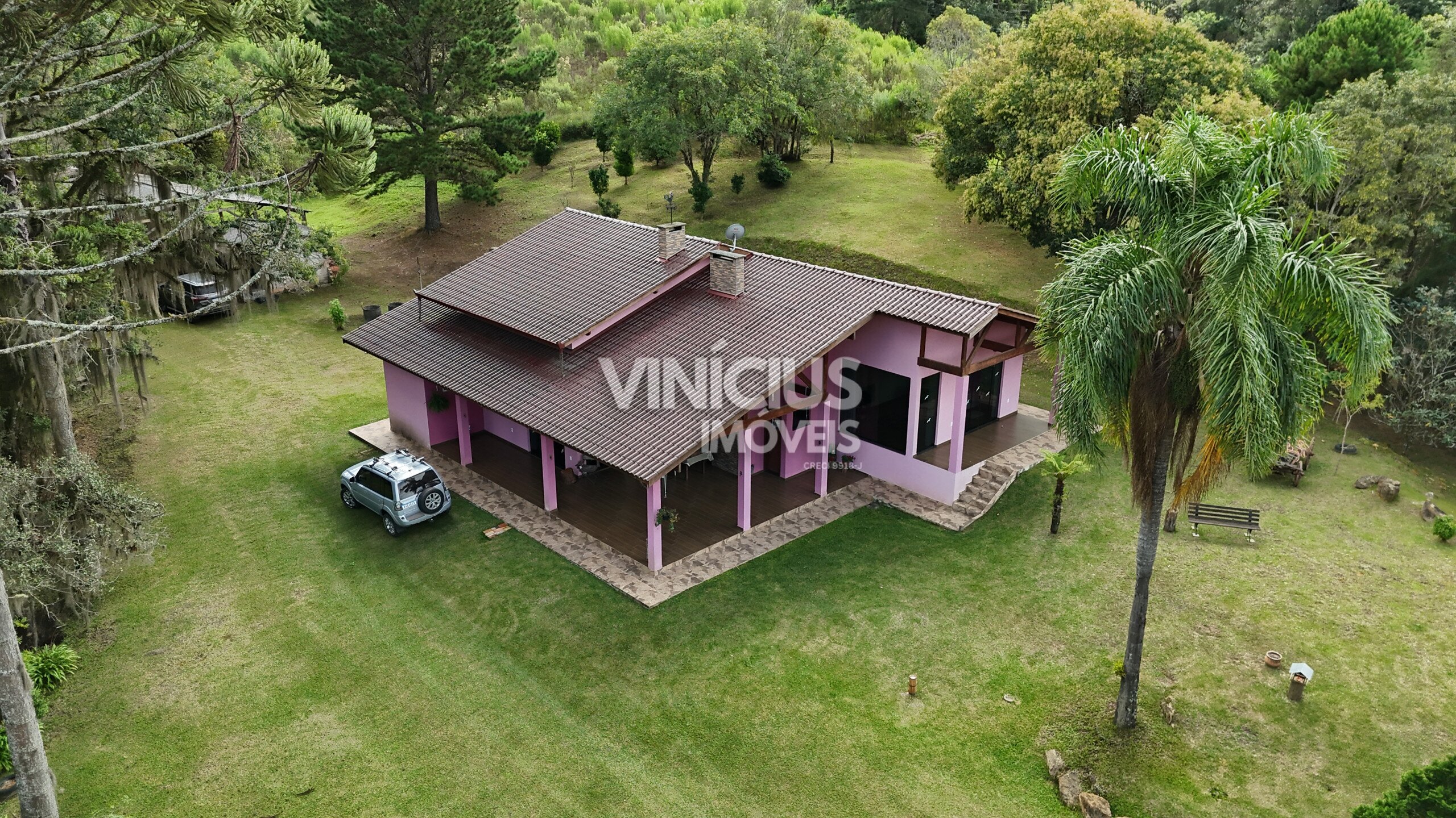 A propriedade conta com duas casas bem estruturadas. A casa principal é nova, com aproximadamente 200 m², oferecendo 3 quartos (sendo 1 suíte), sala e cozinha integradas, três banheiros, acabamento em porcelanato, vidros temperados, laje, sistema de gás, além de churrasqueira, lareira e fogão a lenha, proporcionando conforto em todas as estações.
