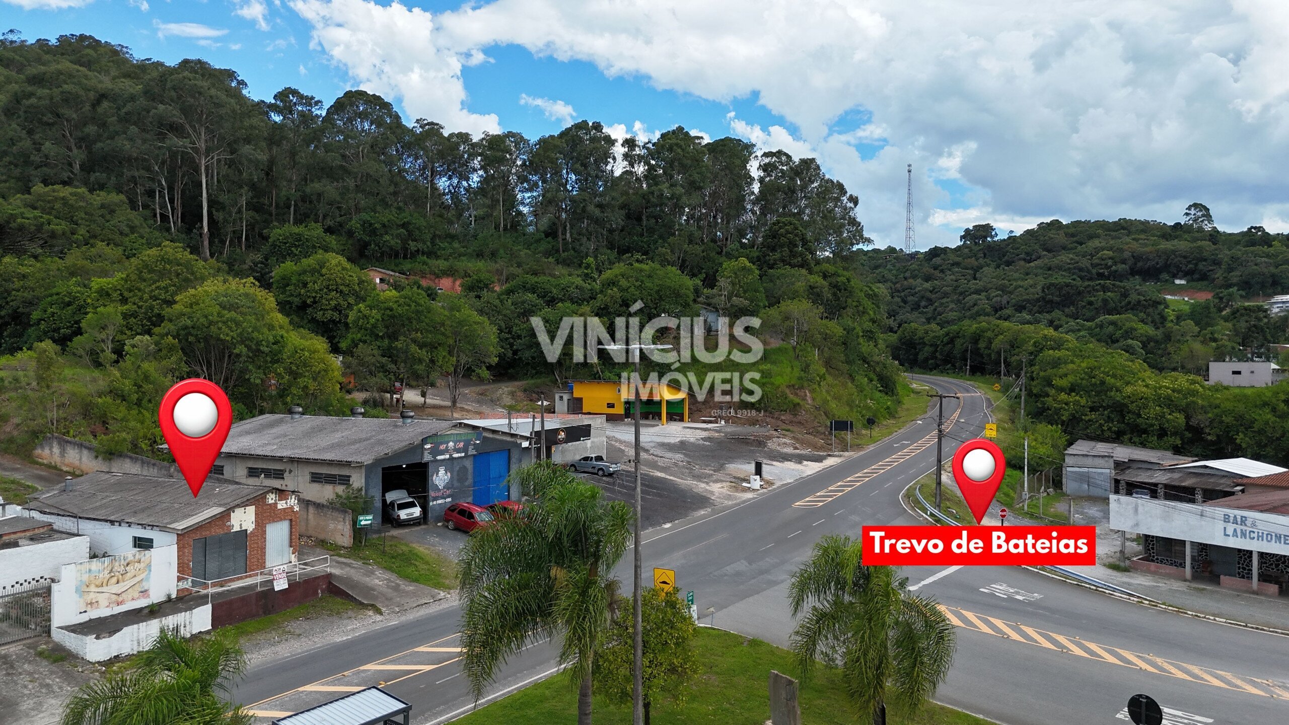 Localizado na área central de Bateias, em frente ao trevo principal, garantindo alta visibilidade e fácil acesso.